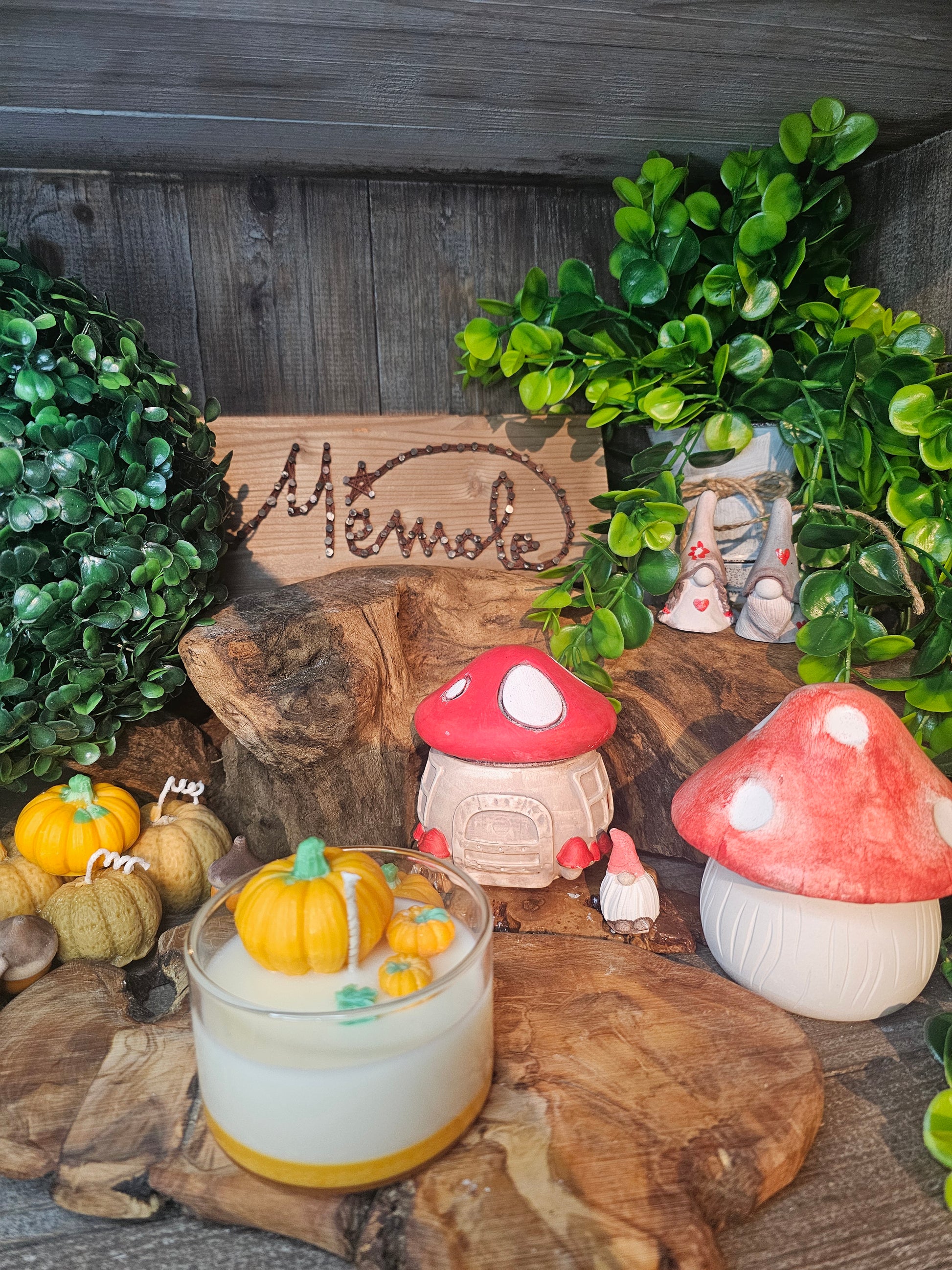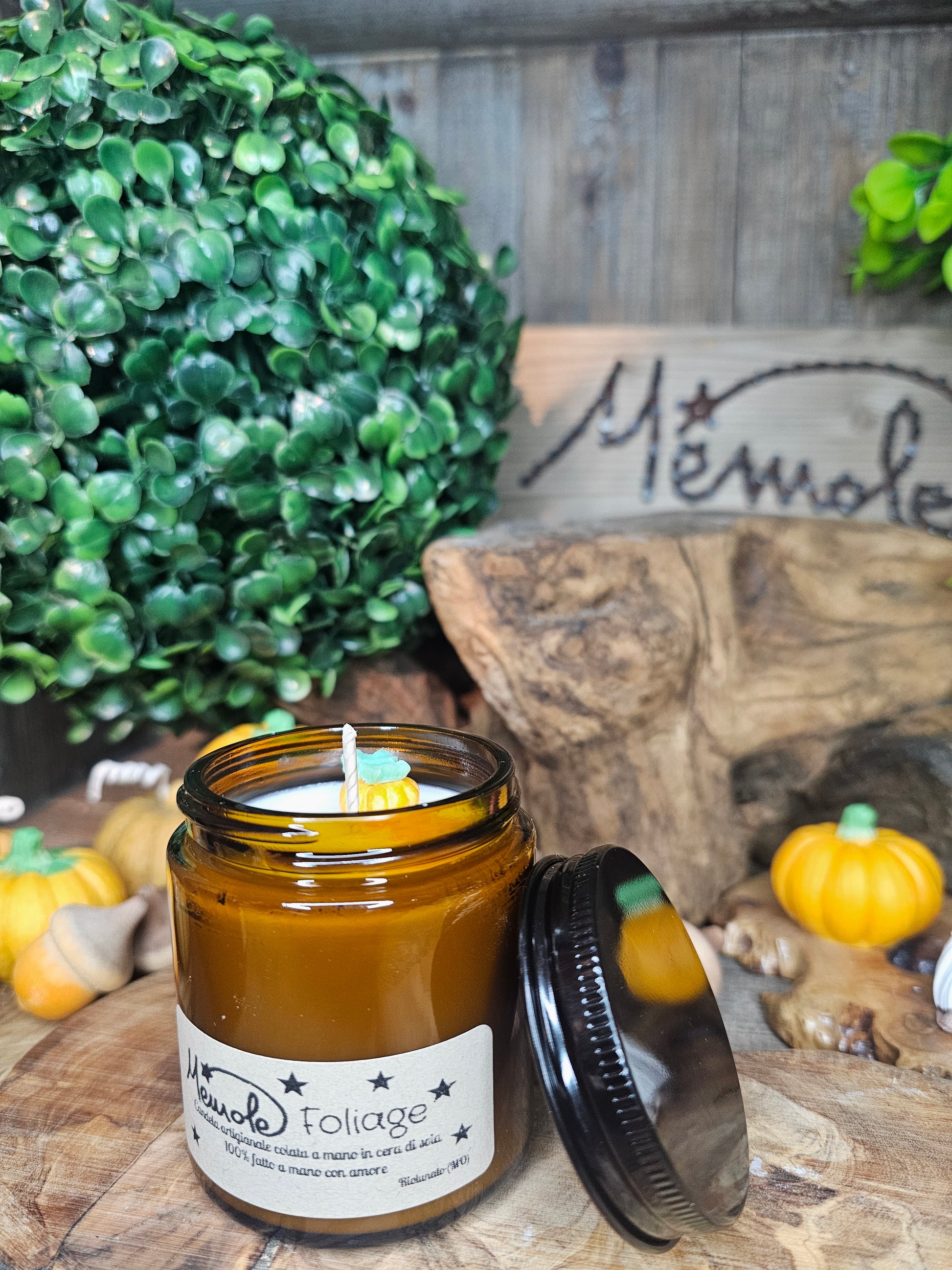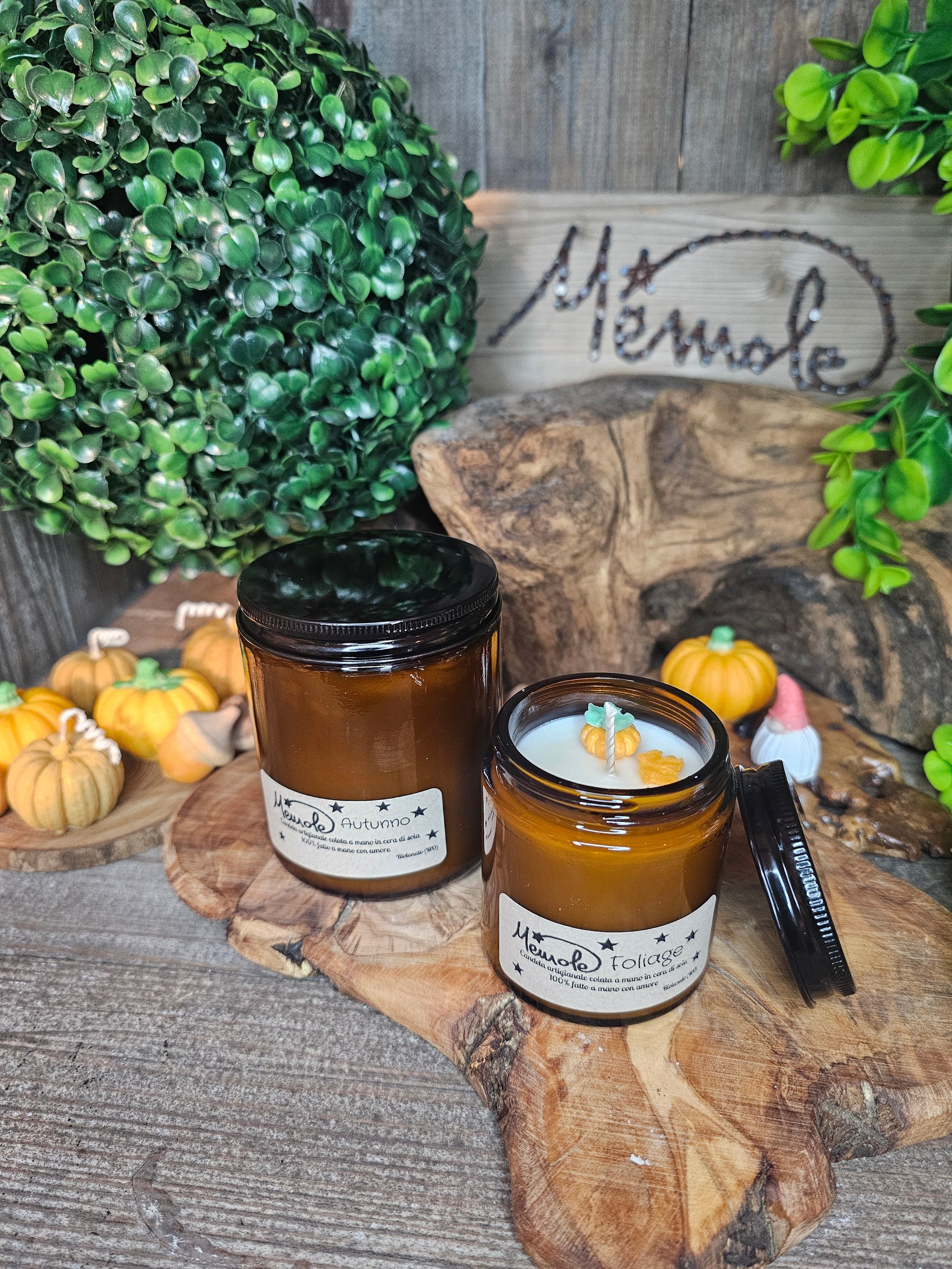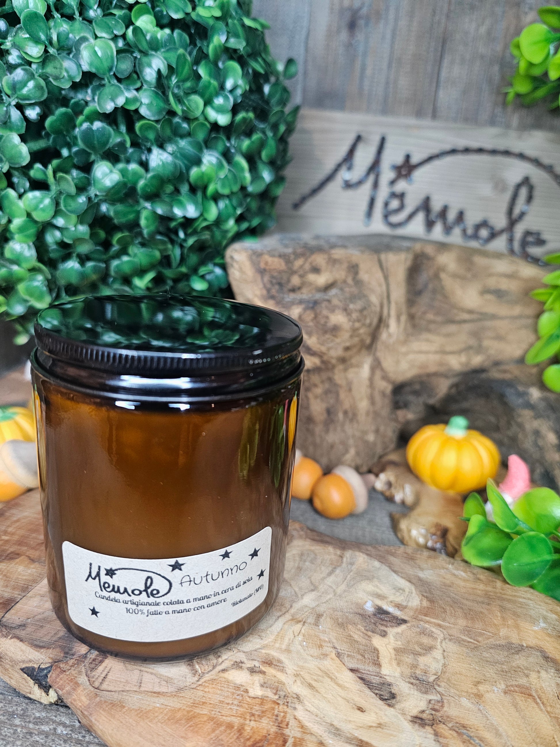 Candela artigianale realizzata con cera di puro olio di soia e colata a mano.
